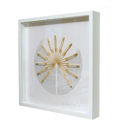 De getoonde werken bij Bamboe Collage's zijn drie dimensionale kunstwerkjes achter glas.